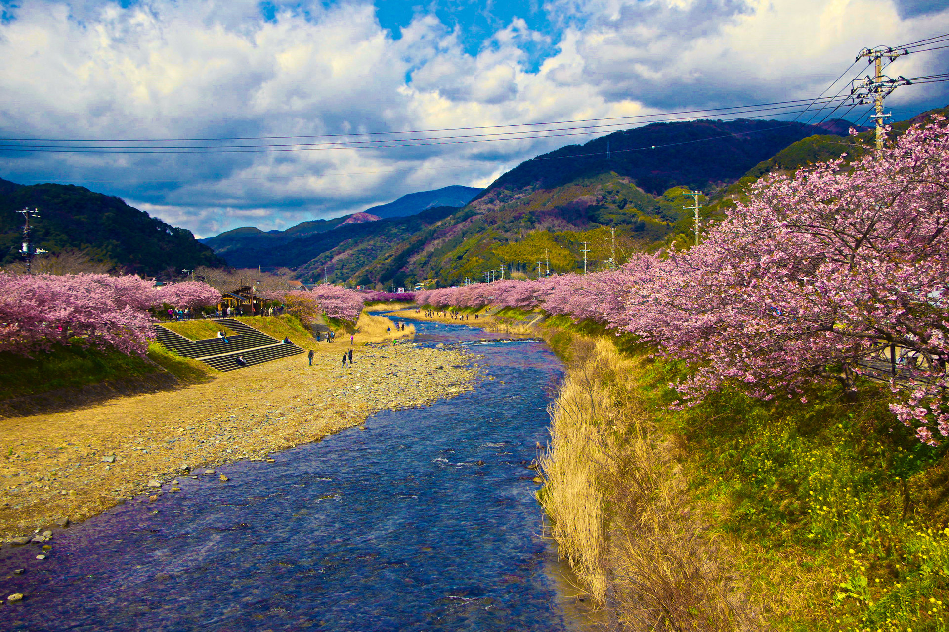 河津川と満開の桜並木