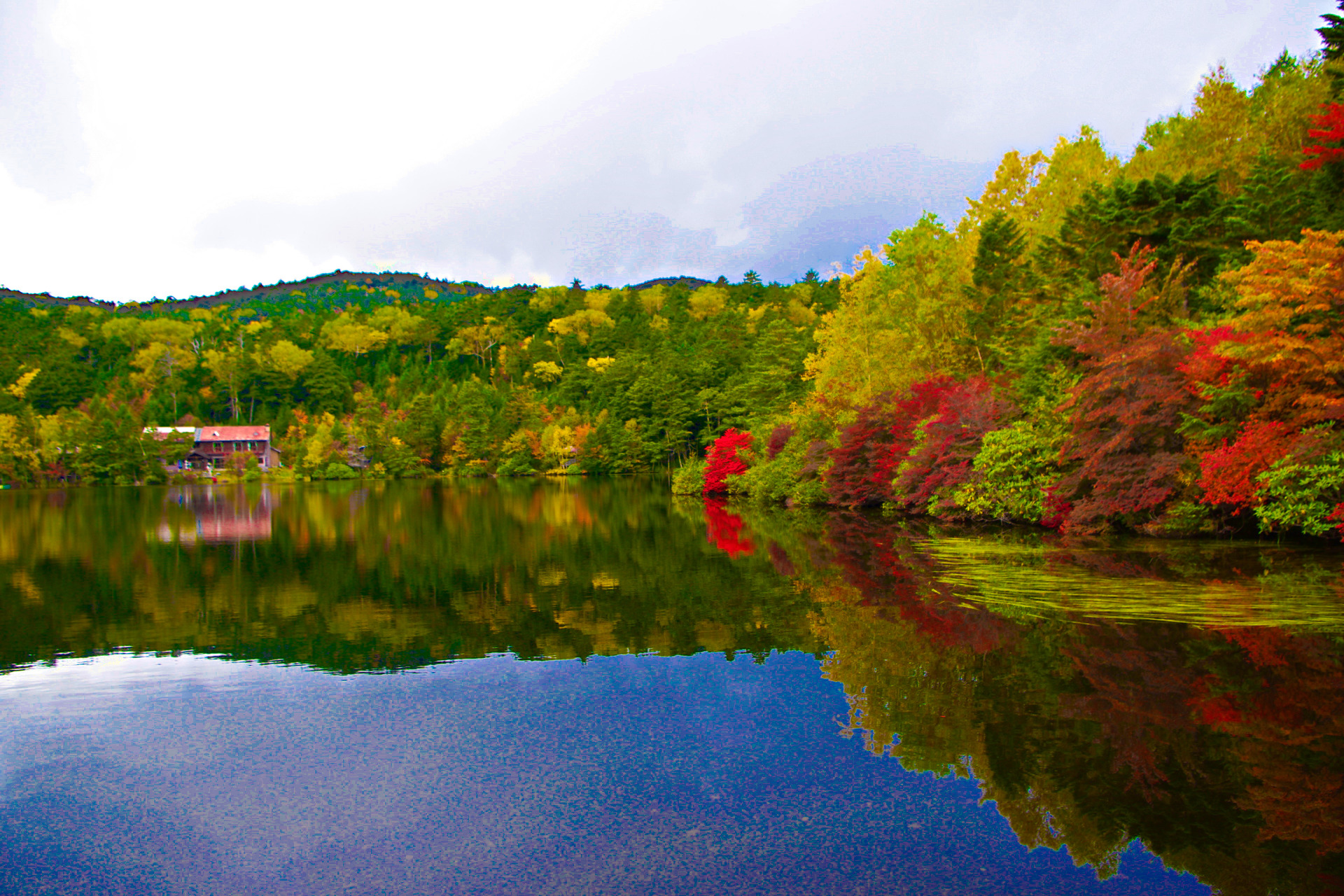 紅葉映す白駒池