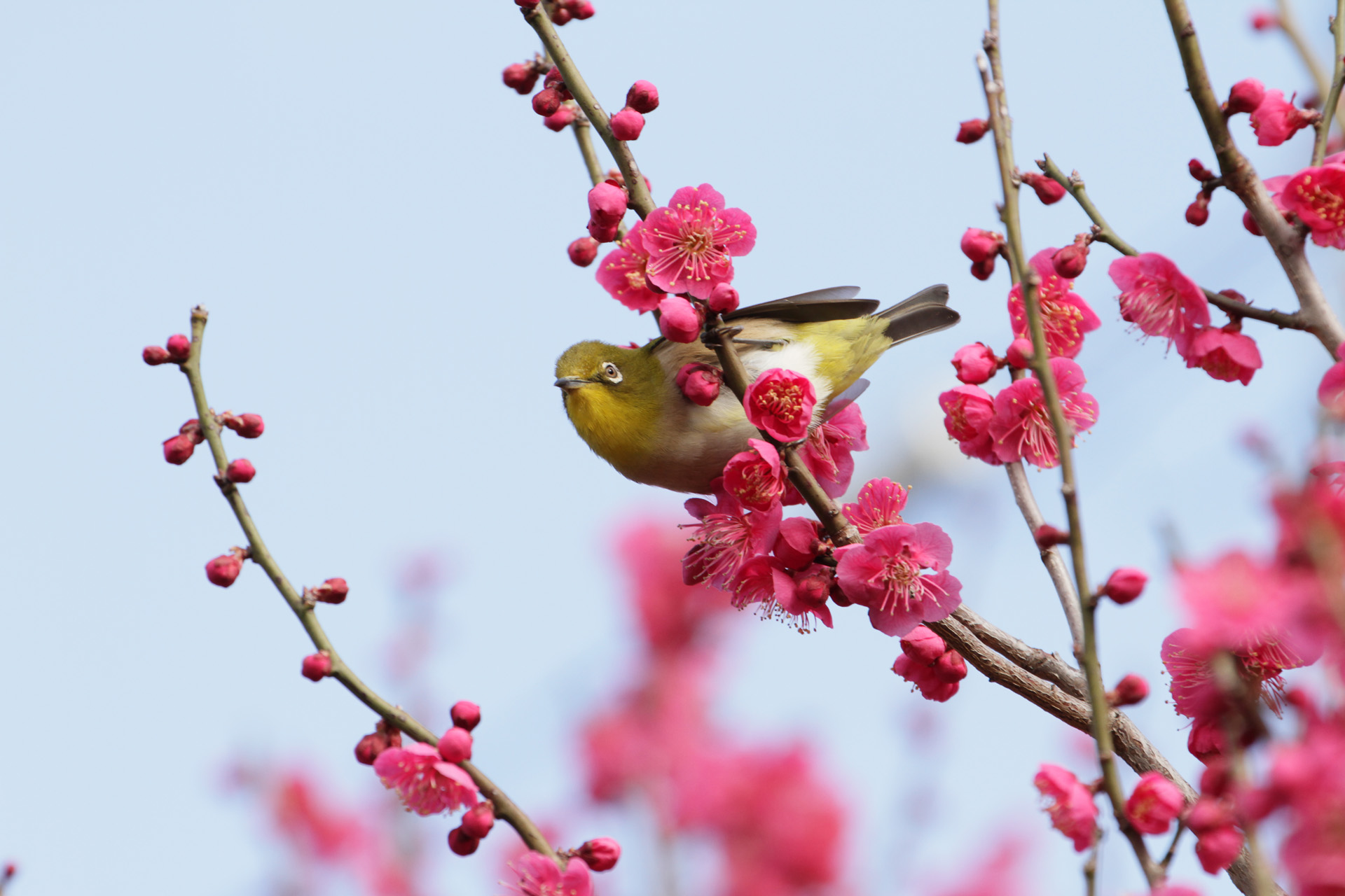 紅梅とメジロ
