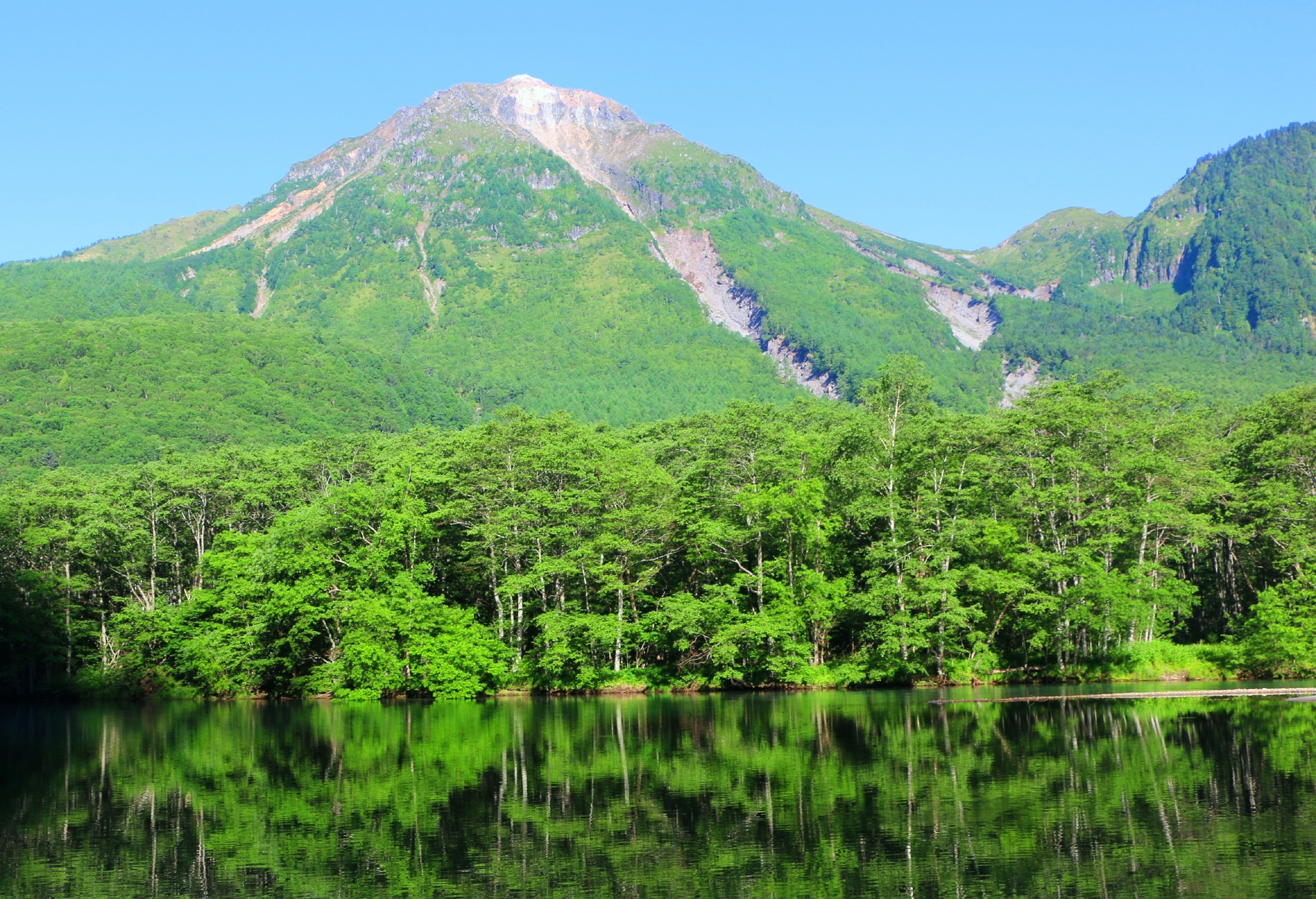 夏の焼岳と大正池