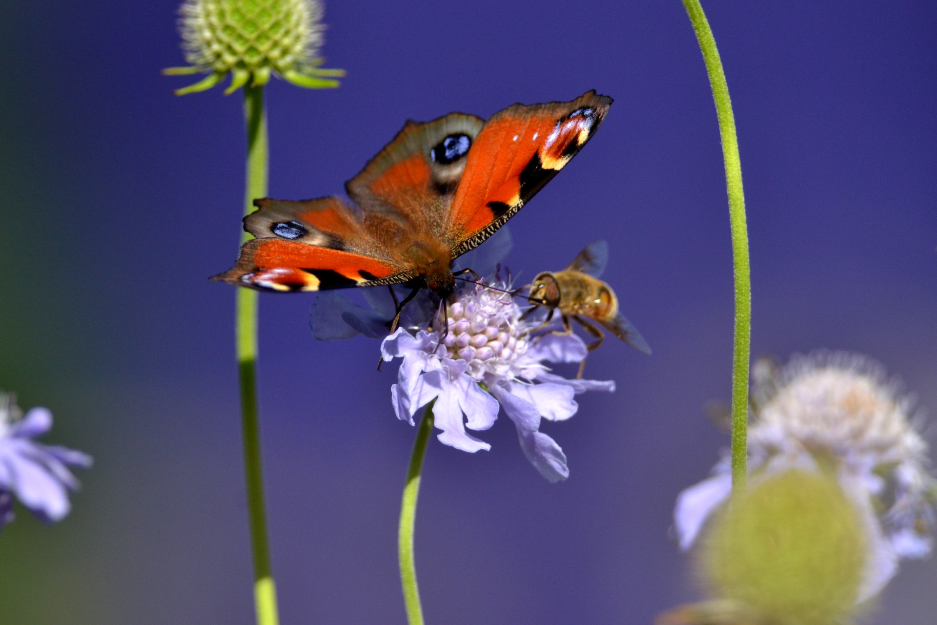 クジャクチョウとマツムシソウ