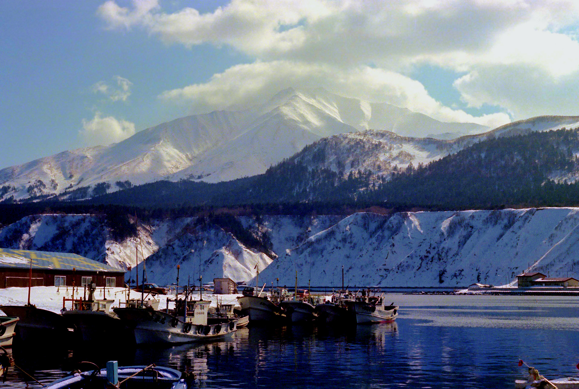 漁港から仰ぎ見る利尻山