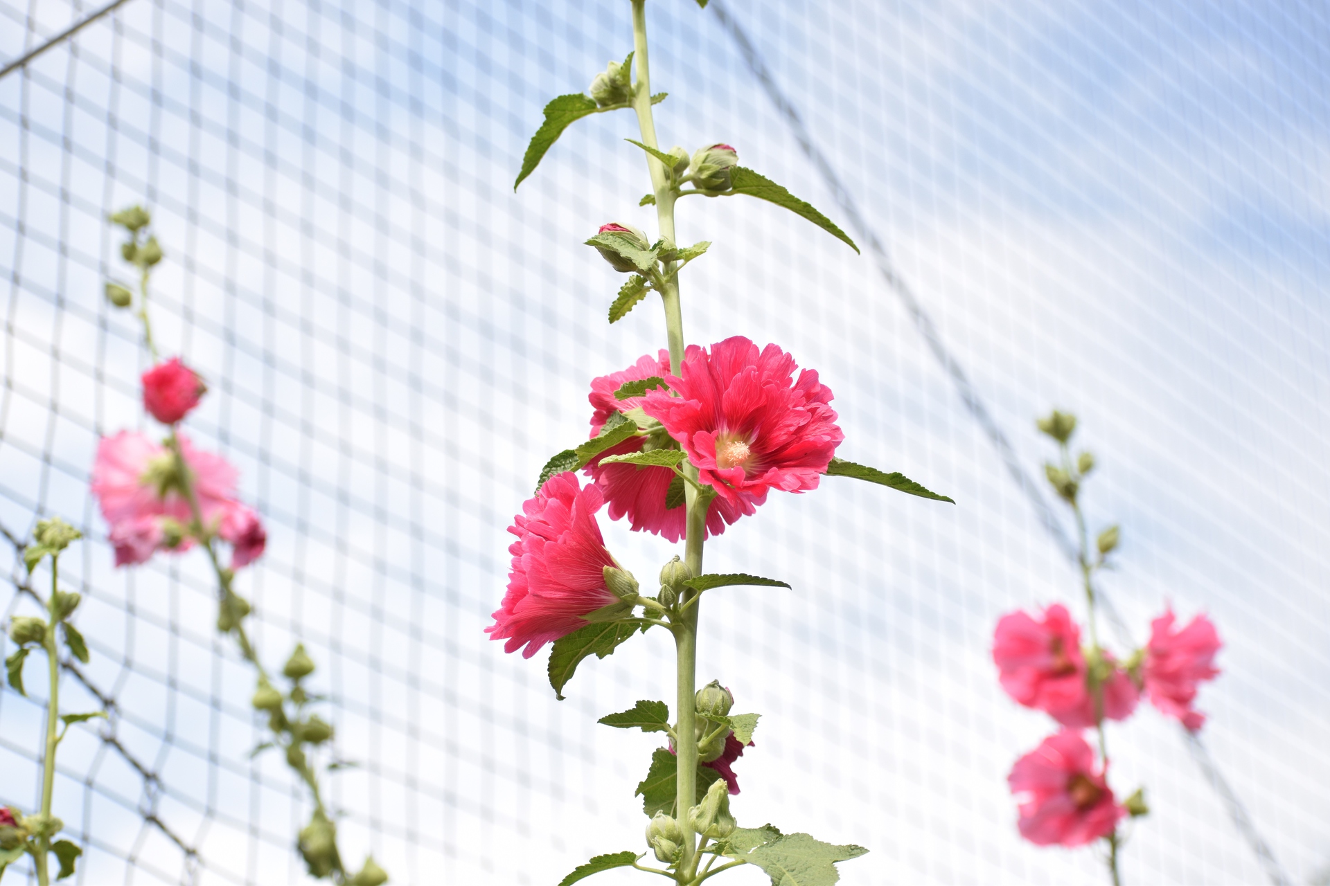 フェンス裏のタチアオイ