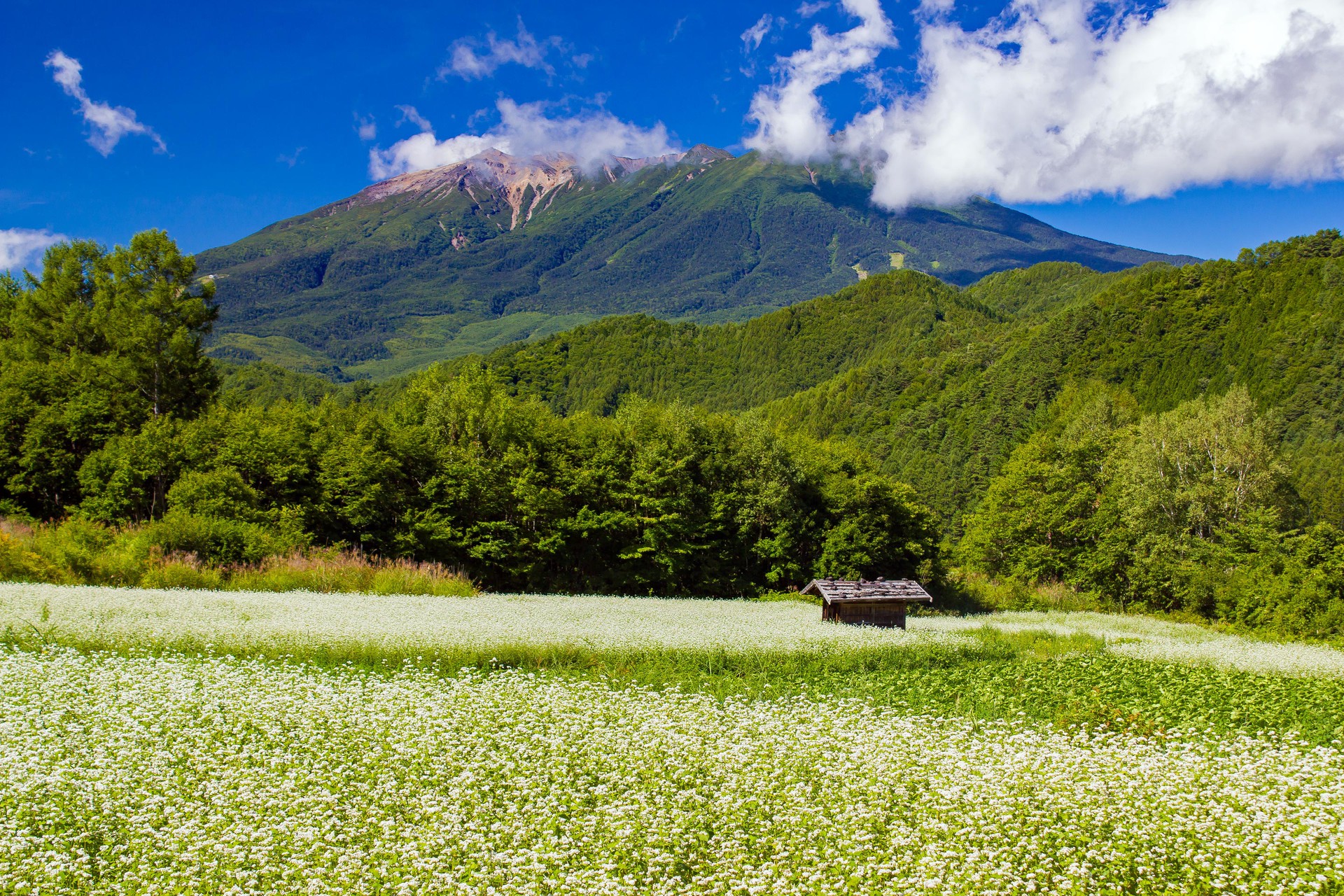 開田高原のソバの花と御嶽山
