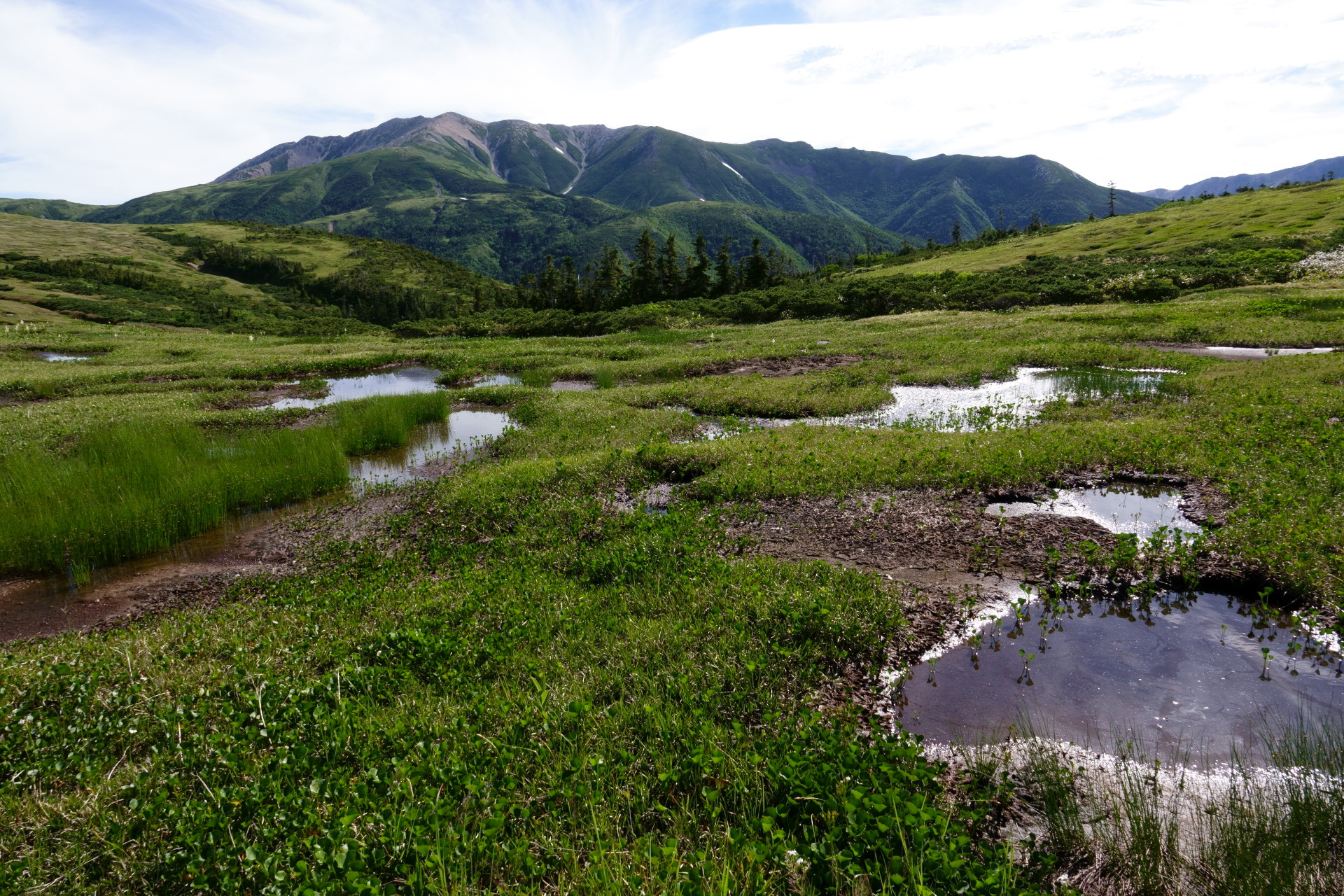 池塘と薬師岳