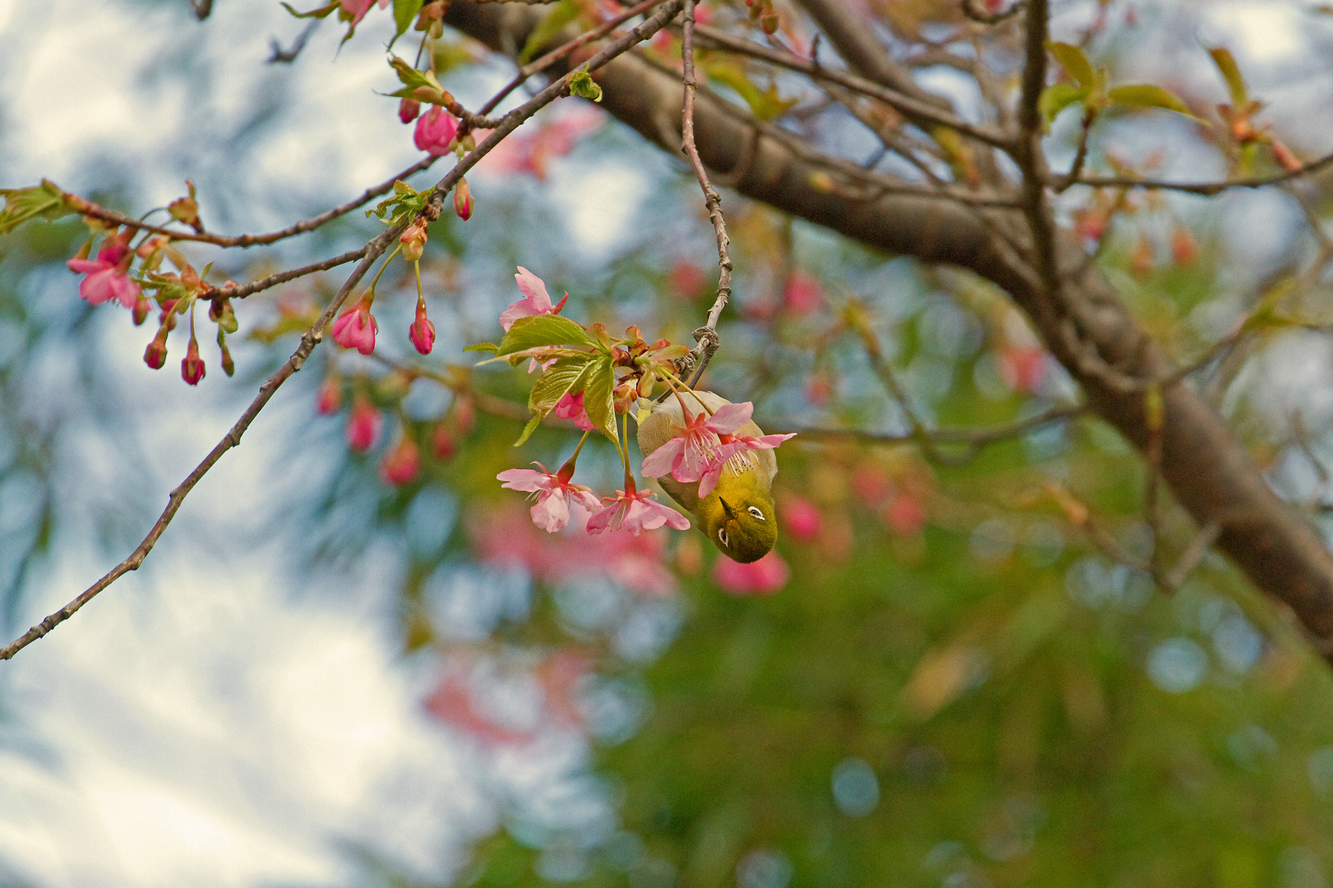 早咲きの桜にメジロ