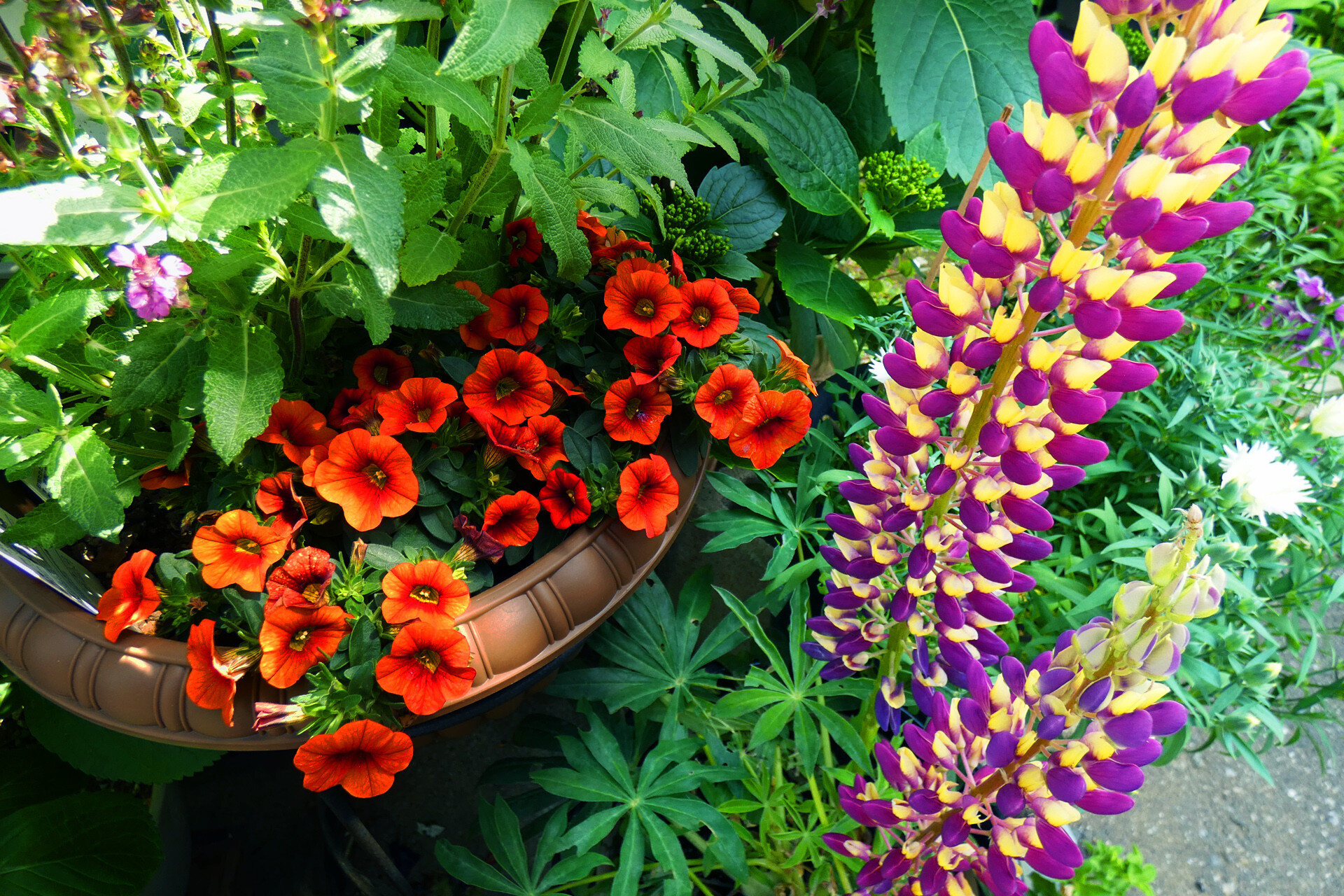 鉢植えの花と