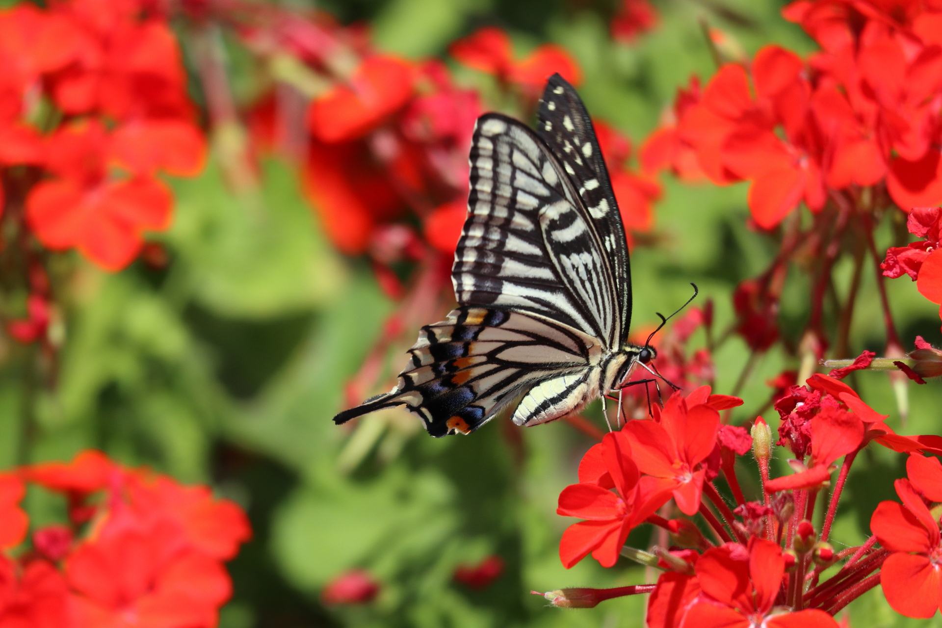 赤い花に蝶