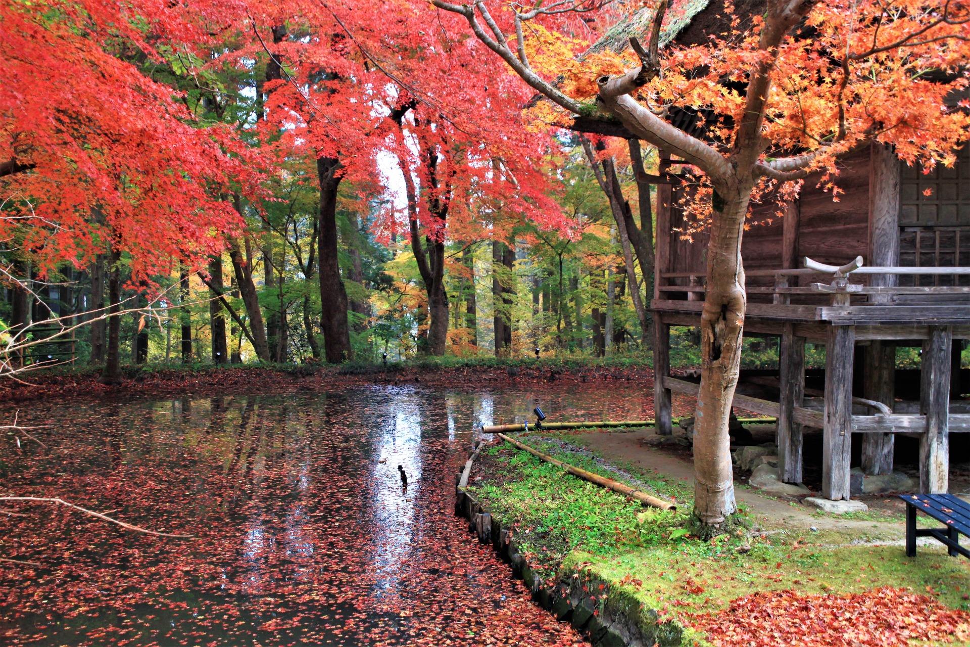 池と紅葉