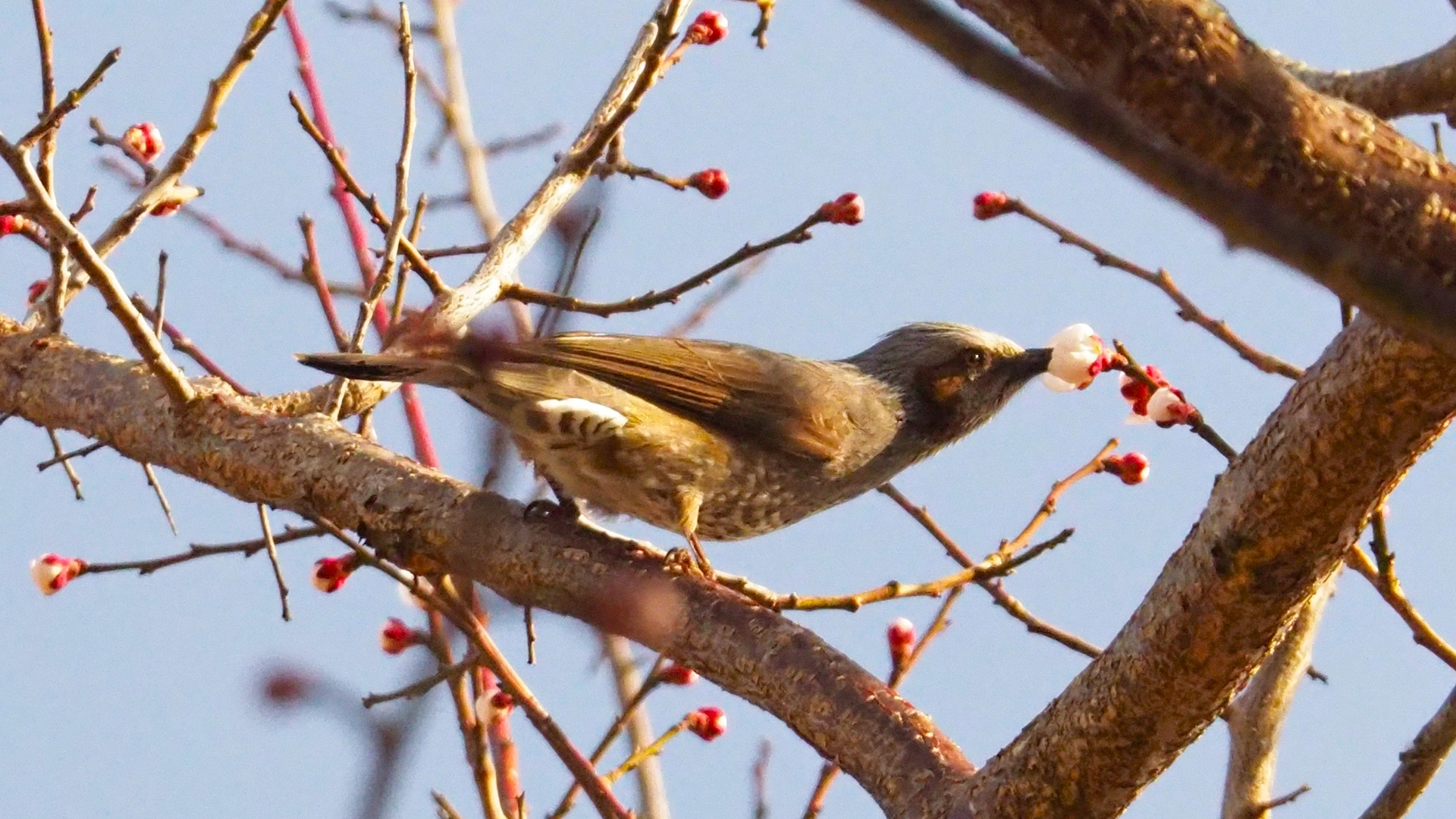弘道館の梅とヒヨドリ