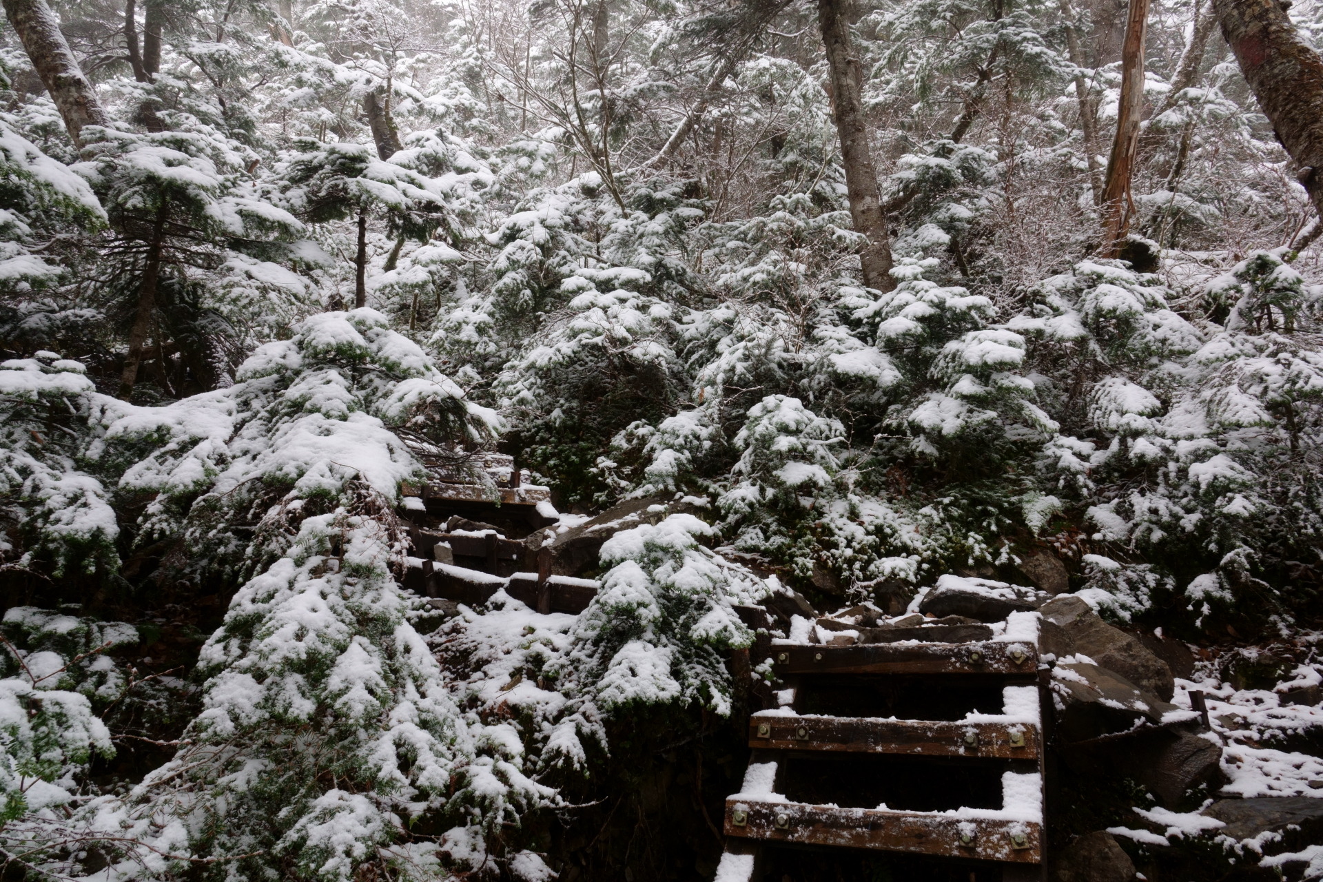 新雪の登山道