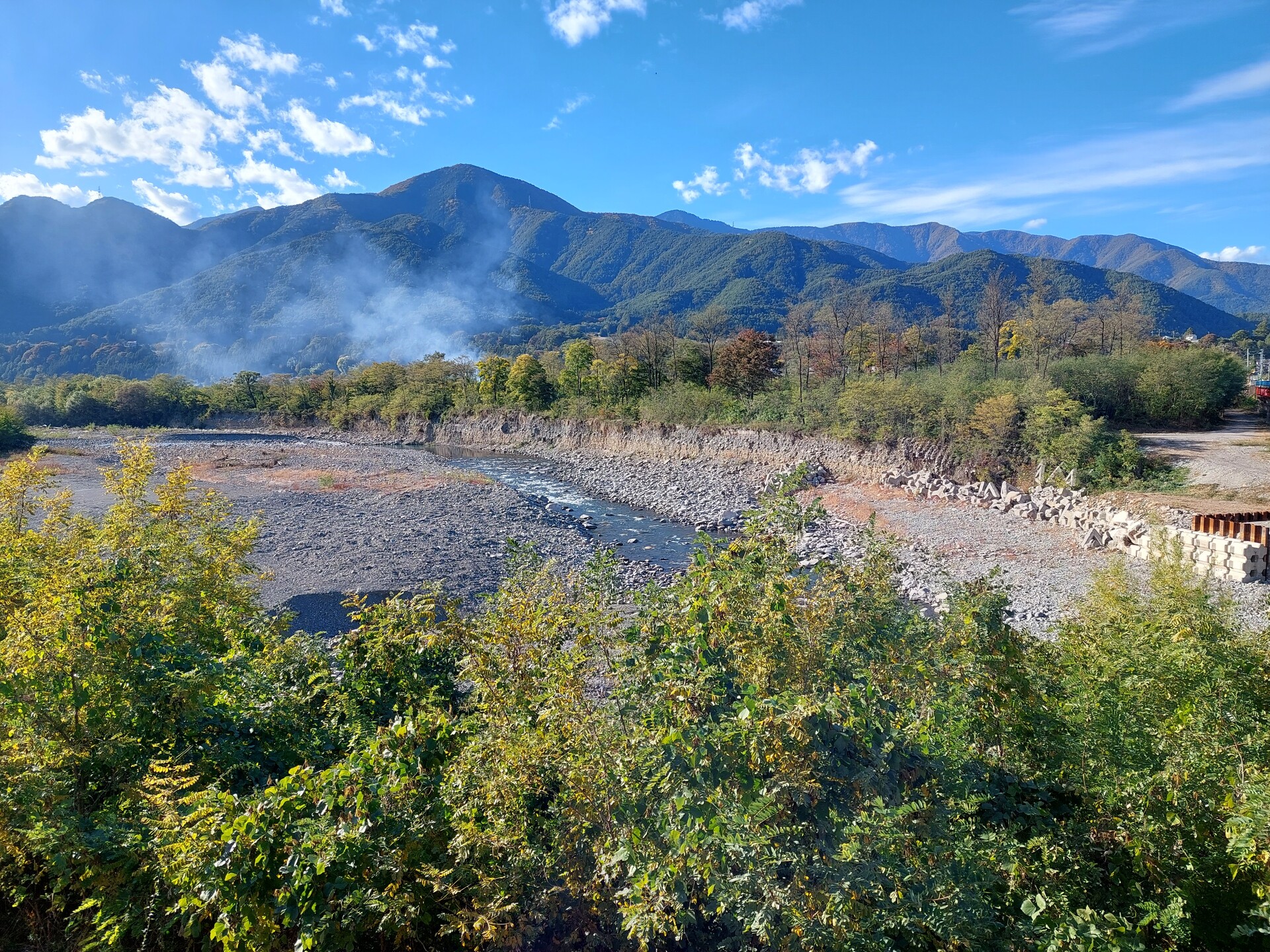 秋空を浴びる信州梓川