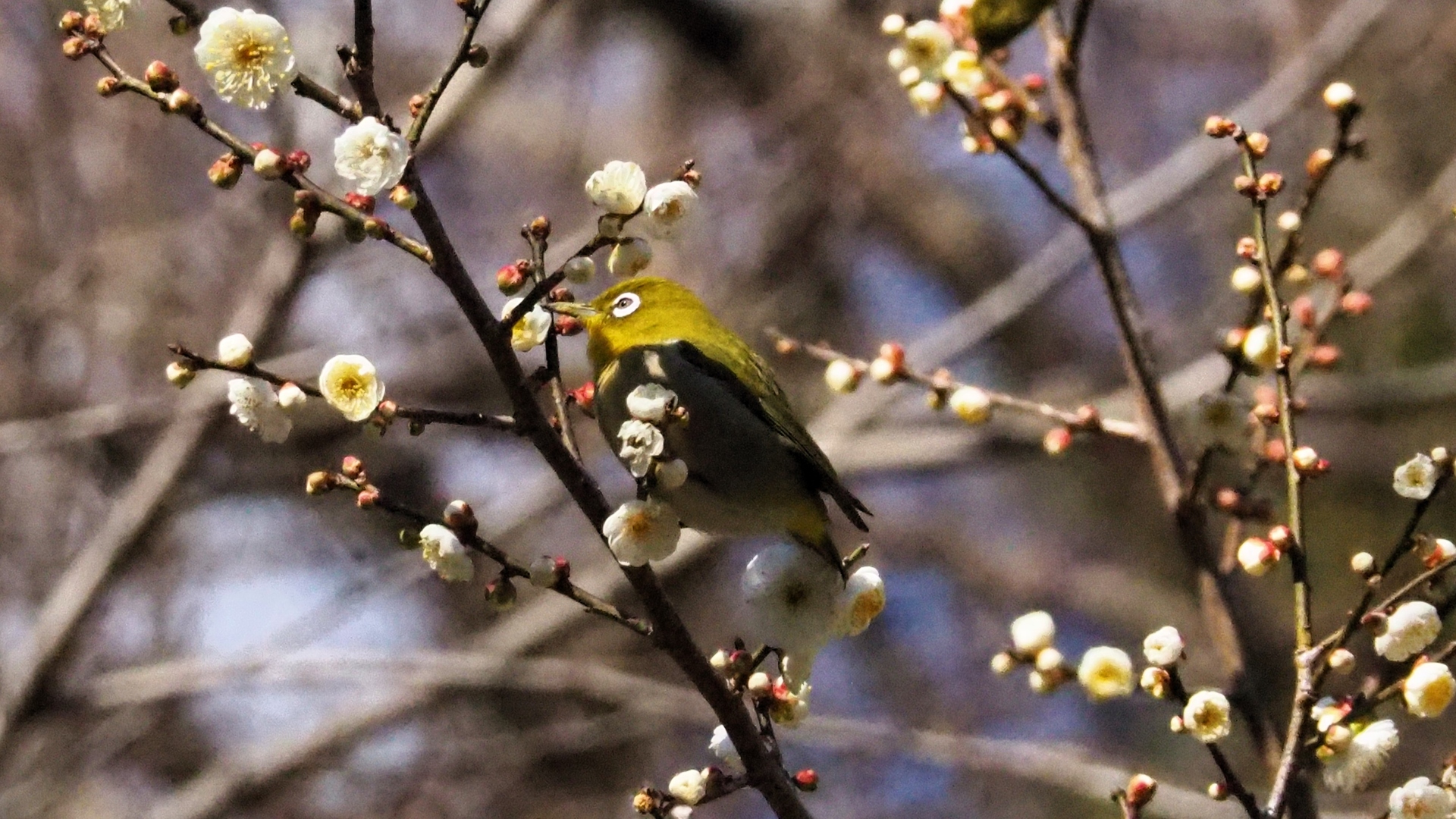 熱海梅園の白梅とメジロ