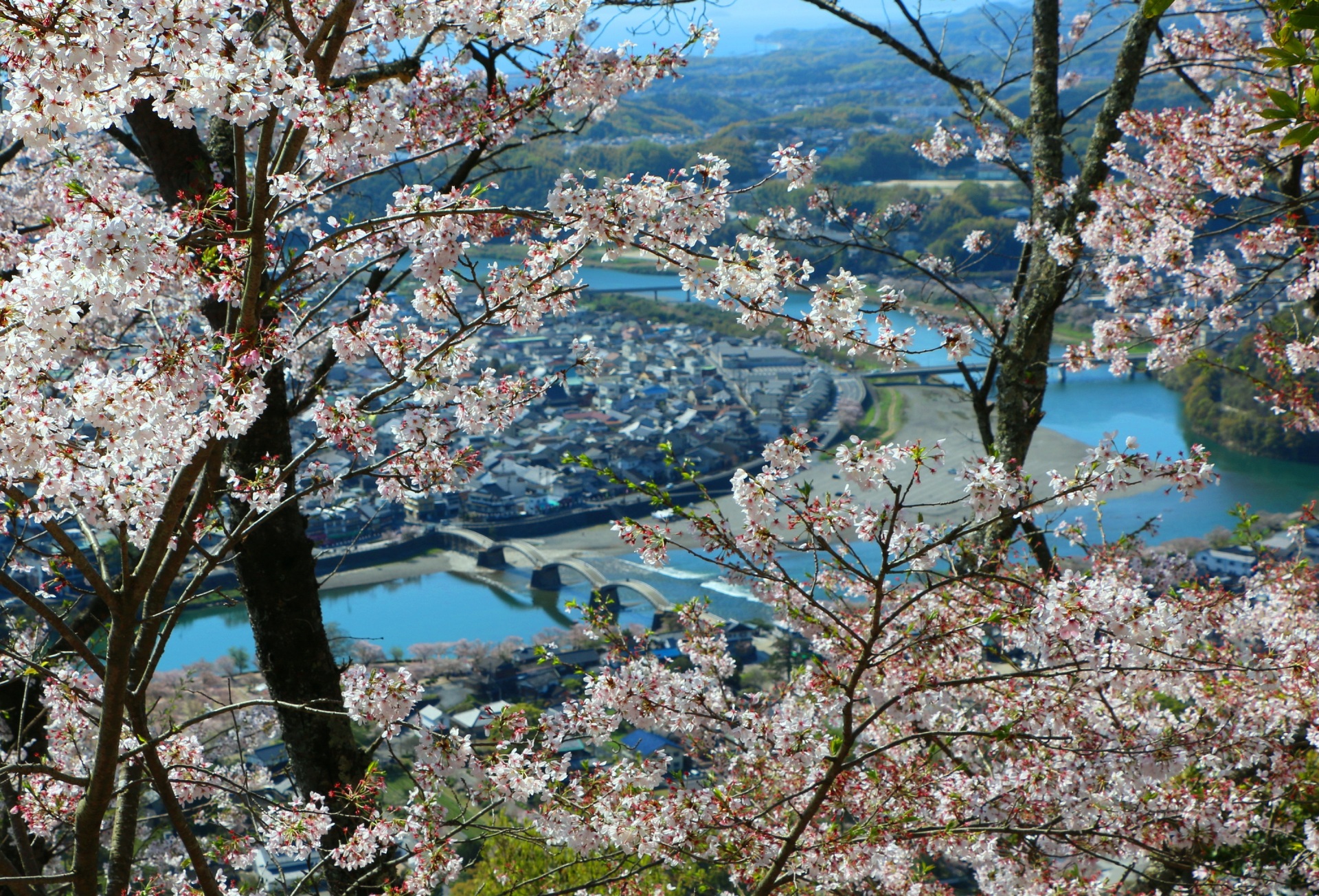 桜の中の錦帯橋