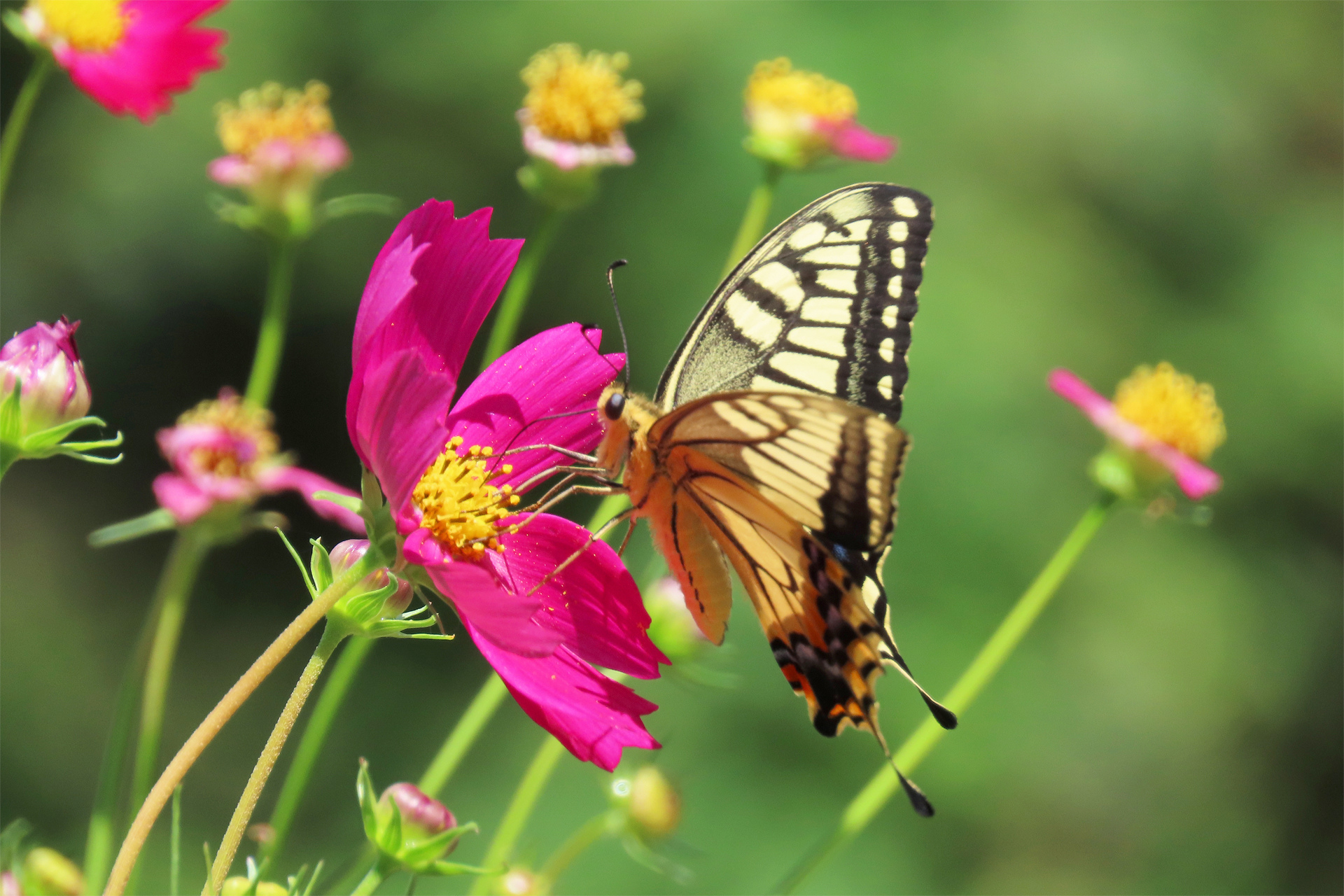 秋桜にキアゲハ