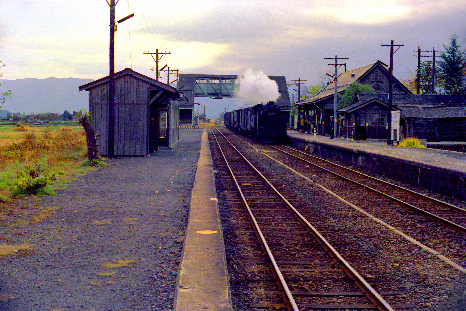 会津高田駅を通過する貨物列車