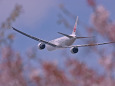 満開の桜とJAL