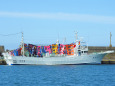 大漁旗を掲げた漁船